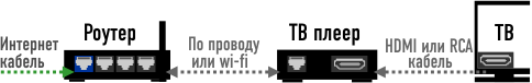 Через роутер. Подходит для всех моделей ТВ приставок и Wi-Fi медицентров