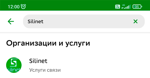 3. В поиске наберите: silinet или силинет (или ИНН 5036116657) (установите в «Сбербанк Онлайн» поиск по все регионам, чтобы найти СИЛИНЕТ)