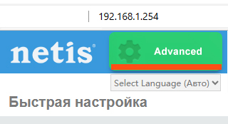 | 3.3. Войдите в меню роутера. Нажмите Advanced | ![]() |