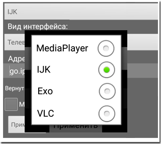 2.1. Если трансляция не заработала или появилось окно с предупреждением, что медиаплеер не найден, попробуйте выбрать другой медиаплеер в приложении.